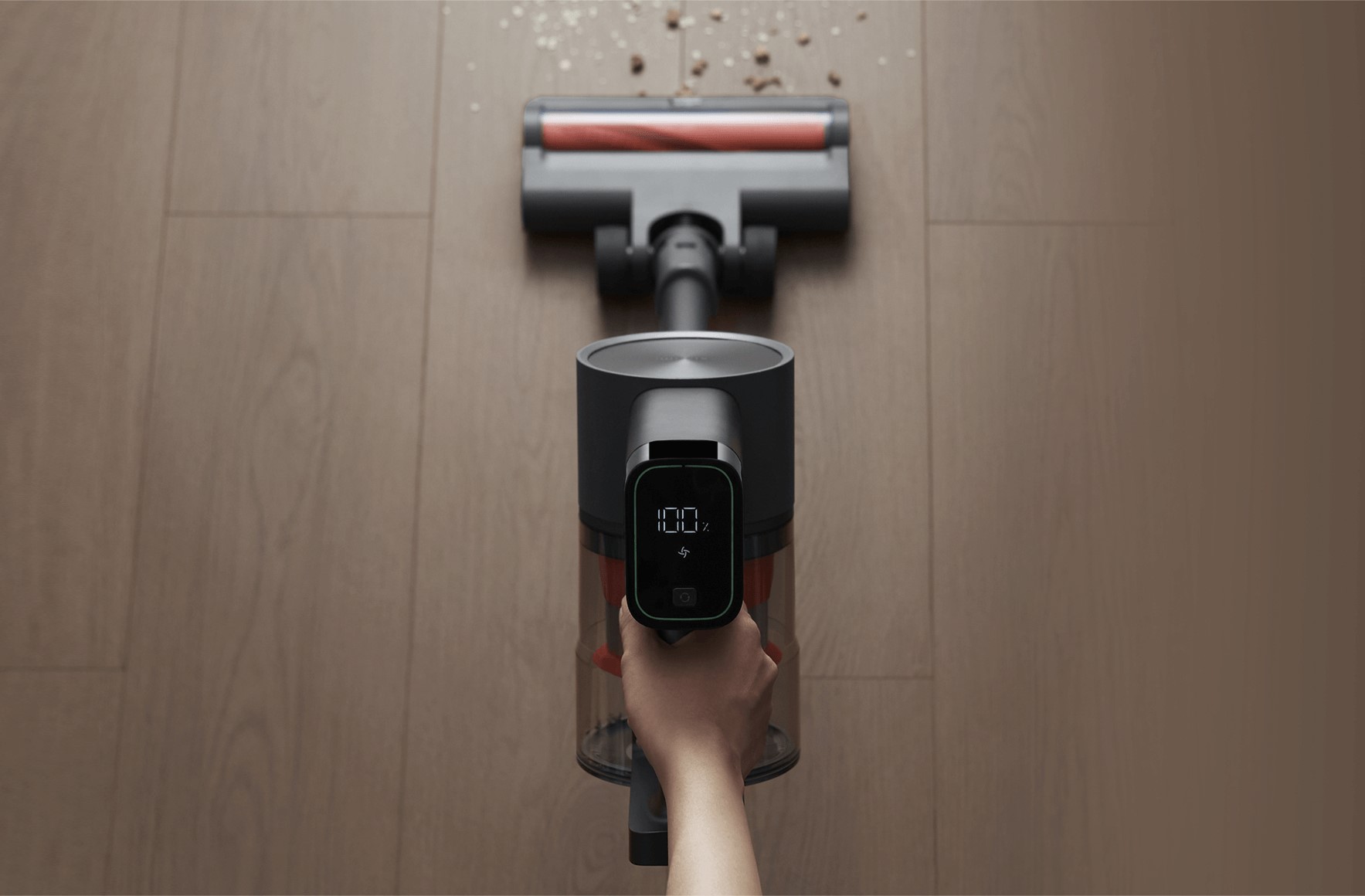 Благодаря высокопроизводительному бесщеточному двигателю с максимальной мощностью 520 Вт, пылесос обеспечивает силу всасывания до 25000 Па, что позволяет эффективно удалять крупный мусор, длинные волосы на коврах и пыль из глубоких щелей.