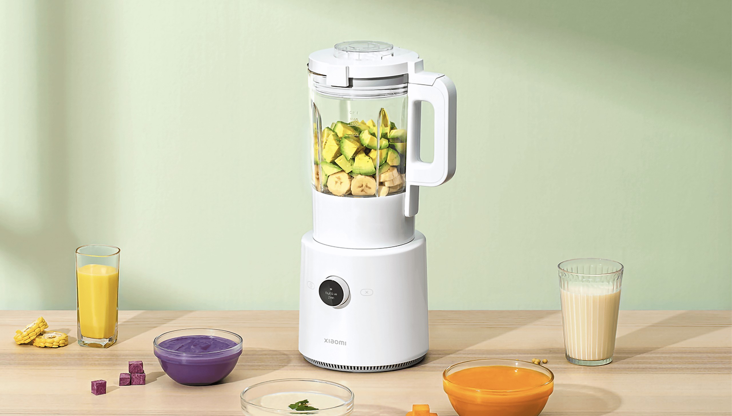 Xiaomi Smart Blender ― кухонный прибор для измельчения продуктов, смешивания ингредиентов и приготовления кремов, соусов и других блюд. Имеет встроенные функции таймера и подогрева продуктов. В комплект входят мерный стакан и специальная щеточка для чистки.