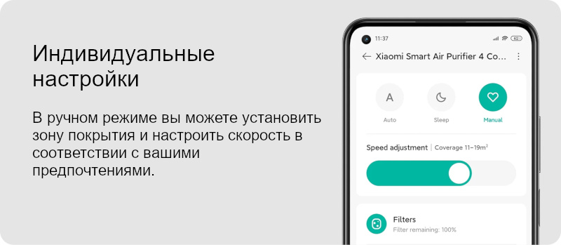 Благодаря точному мониторингу качества воздуха и автоматической регулировке скорости очистки вы всегда можете наслаждаться чистым воздухом.